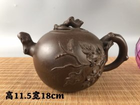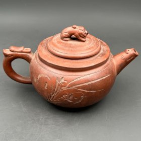 旧藏蒋蓉手工紫砂壶!壶形设计独特美观!手工捏雕青蛙栩栩如生!包浆浑厚老道!多孔出水!保存完整!可藏可用!