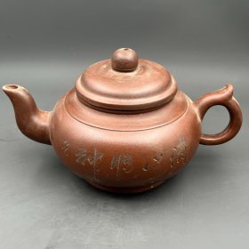 旧藏陈鸣远手工紫砂壶,壶形设计独特美观!浮雕关公图案,包浆浓厚老道,保存完整,可藏可用! 底款:陈鸣远 容量:330cc 紫砂分类:原矿段泥 陈鸣远字鸣远,号鹤峰,又号石霞山人,壶隐,清康熙年间宜兴紫砂名艺人,是几百年来壶艺和精品成就很高的名手。