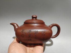 旧藏精品紫砂壶,品名:菱花,底款:曹洪喜,壶形设计独特美观,包浆浓厚老道,保存完整,可藏可赏!长15厘高8厘米 容量:约300cc