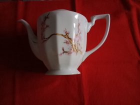 (孤品)五十年代精细手绘梅花茶壶,1964年张家口专区公署工业局尚义煤矿,奖给(1964年度先进单位)茶壶一把,盖纽缺失