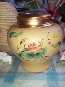 容量3斤左右,(原矿,老紫砂茶叶罐。荷花翠鸟蜻蜓图案,容量1650毫升左右,可以装茶叶3斤多点左右。高15.5厘米直径16厘米左右,重1公斤,金属盖子。罐子干净。