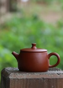 汉瓦壶(大口汉瓦/直筒汉瓦)造型。 汉瓦壶是紫砂经典器型,灵感源于汉代瓦当,这款壶身呈直筒状、广口大盖、短直壶嘴搭配环形壶把的特征,属于汉瓦壶里的直筒汉瓦样式,也是建水紫陶中常见的复刻形制。此壶使用后清理十分便利,简约复古风的款式落落大方。