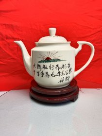 老端壶一把,绘有【大海航行靠舵手,干革命靠思想】,包浆圆润,倒水流畅,保真包老!茶壶