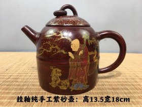 精品挂釉纯手工紫砂壶 纯手工打造,磨损自然,微折线钢劲有力,密封性良好,散热慢,出水更为流畅,断水利落,造型漂亮 壶型周正古朴,敦厚庄重,品相完整,成色如图
