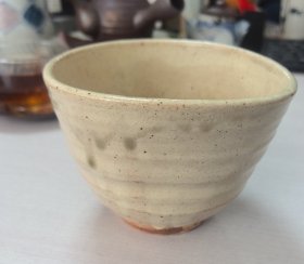 日本购回:日本茶器,抹茶碗,茶碗,手捏茶碗,不是圆形,口沿呈梨形,陶胎柴烧窑变流釉,日式美学的雅致,精品茶道用品,底部有款不认识,看着不俗,购者自鉴。
