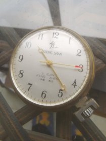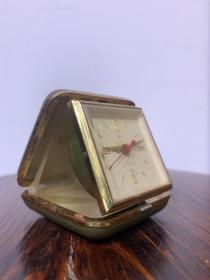 折叠式早期老物件上海钻石牌机械闹钟 旅行闹钟外壳铜质,带绿色皮质内衬