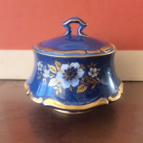 日本购回:西洋欧式钴蓝釉描金手绘 浮雕骨瓷茶叶罐,糖罐,钴蓝色,非常漂亮。