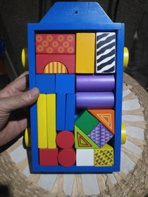 德国出的实木积木24块及木质装积木的小车车,前面系上绳子小朋友可以拉着走,全木结构,木轮子。【图片为实拍,品像以图为准】整体品像好,适合收藏做怀旧摆件或小朋友玩耍使用,一面木轮有小脱漆