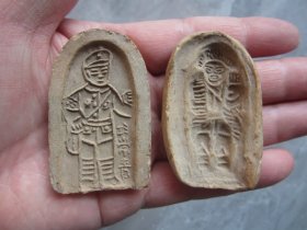 文*.红常青样板戏人物砖模老玩具.右侧那块应该是杨子荣