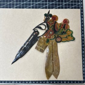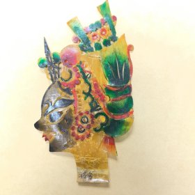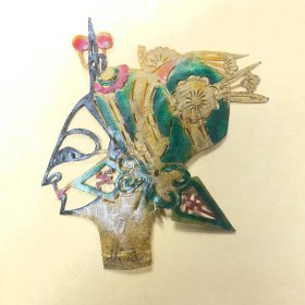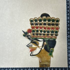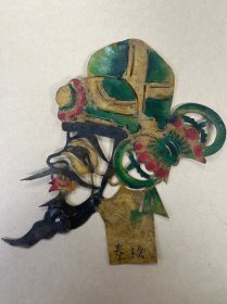 人物皮影《武将》 高度35厘米 手工驴皮制作,旧称“影子戏”或“灯影戏”,是一种用灯光照射驴皮做成的人物剪影以表演故事的民间戏剧,品相完好成色见图,已装裱复古装饰民俗摆设佳品……