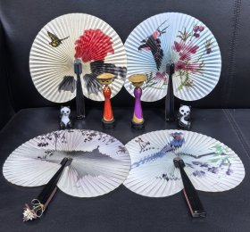 创汇期中国工艺品:《手绘木偶2件及折叠团扇4把》附赠瓷熊猫小件