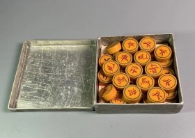70年代铝盒包装料器中国象棋一副,品相如图,全原装,做工精细,棋子手工刻字,小巧别致。