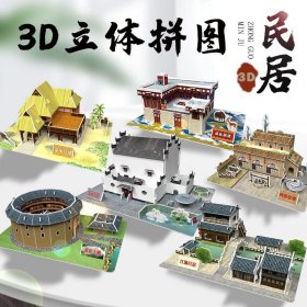 中国民居建筑3d立体拼图纸质儿童幼儿园手工益智拼装模型diy玩具!一套6款56元!