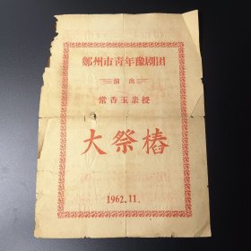 大祭樁 常香玉亲授 郑州市青年豫剧团1962.11演出单(杂项四)