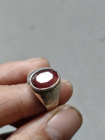 晚清 雪花银嵌红宝石戒指 天然红宝石,假一赔十