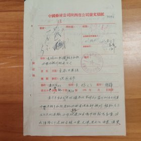 1956年中国药材公司陕西省公司通知函:为增加新疆五棓手50担由你站执行的通知。2页
