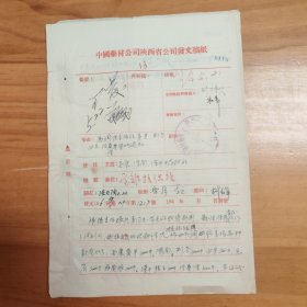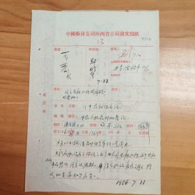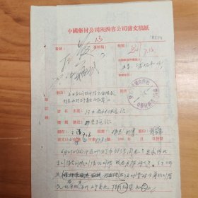 1956年中国药材公司陕西省公司通知:为北京公司执行情况仍按原规是办理不予变更的批复。2页