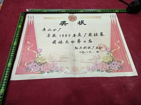 1989年绍兴龙头企业,绍兴钢铁厂,围棋赛团体总分第二名奖状,尺寸品相如图。