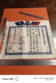 民国十六年 中央训练团毕业证书 蒋中正陈诚签发尺寸 34X28CM