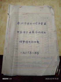泰州市食品公司另管处所属变蛋卤菜合作行业经营情况的回报(1966年8月份)