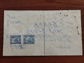 1954年2月6日带老税票收据一张(中间断开),背后带1952年面值1000元和面值10元税票各一张,尺寸:15.5*8.8CM,7品