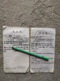 两张中医处方笺 病例(10多年由高坠跌扭伤左肋)等+处方