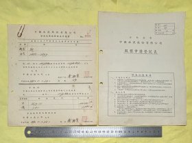 俞湘云(浙江余姚人,丈夫.公平烟行、夏国樑)中国水泥“股款收据换发股票申请书”及“股权申请登记表”一对【铺保:友声无线电行.徐贵三】