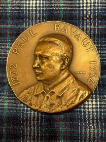 高浮雕法国医生Paul Ravaut纪念铜章 20世纪30年代原版法章