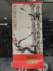 3开挂历 1984年国画花鸟年画 ,缺两页,上海人民美术出版社