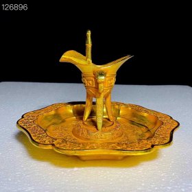51_清代乾隆年制铜鎏金六边形金凤盘杯(拍前请咨询店主价格)_cfIF1R
