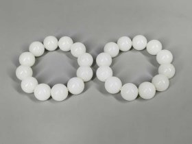 68_老和田玉手串一对 玉质温润洁白,入手细糯,保存完美,极为难得。