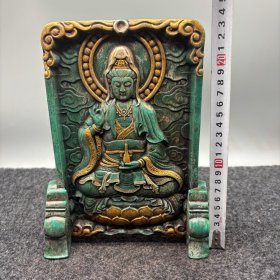 珍藏旧藏绿松石屏风插牌 花瓶观音 尺寸:长17厘米.宽6厘米.高23.5厘米. 重量:约900克