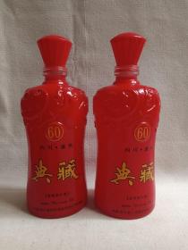 《四川泸州酒(典藏60)--浓香型白酒》空酒瓶·空瓶·玻璃瓶·外包装瓶2010-2020年代(中国·四川老泸州酒业有限公司出品)一对合售