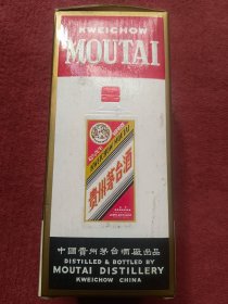 九十年代贵州茅台酒瓶带盒【43度飞天茅台】-【酒瓶上盖有新疆糖酒付食品总公司章】