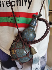 【瓷都德化出品】 招财进宝葫芦水壶酒壶密封便携中国风老式陶瓷 四色可选择,拍下后留言款式即可,默认随机发,谢谢 精品陶瓷葫芦+手持飘带+斜挎网兜 直径12cm 高23cm 容量700ml