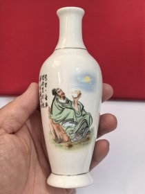 中国名酒类实物小酒版摆件:70年代末安徽亳县古井贡酒瓷酒瓶(李白月下独酌),稀缺80年代初安徽亳县古井贡酒老酒瓶,李白头像、非经常见到的曹操头像,高度无度数标注,1979年第三届品酒会参会酒瓶之一。诗仙李白和他的月下独酌诗句被展现在瓶身,惟妙惟肖至极,美不胜收!瓶身有冲线,尺寸见图