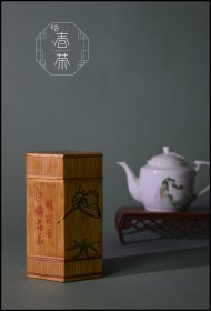 全品567创汇期中国制造中英文底款手绘花鸟老贴竹黄茶叶罐茶叶盒
