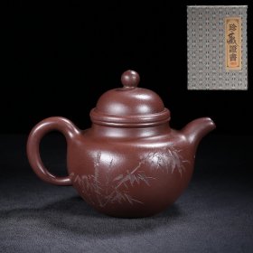 底款:顾景舟 尺寸:18×12cm 容量:350cc 紫砂分类:原矿紫泥 底款介绍:顾景舟(1915年一1996年),原名景洲,后改名为景舟。别称曼希、瘦萍、武陵逸人、荆南山樵,自号壶叟、老萍,中国工艺美术大师、宜兴紫砂名艺人、中国美术家协会会员。顾景舟曾自创堂号为自怡轩。