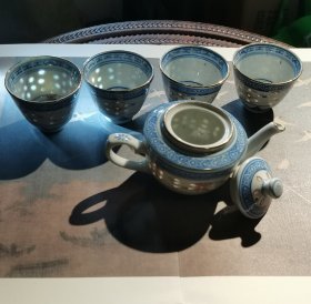 手绘版透光青花瓷玲珑茶具,经典收藏珍品款,一壶四杯,此款汲取了中国画多轻灵飘逸的笔意,真是一套功夫茶具的香饽饽。岁月沉淀使釉色越发醇厚,品相完美,微利为口碑。一口价不议,基本完美。小店铺不玩价格套路,议价绕行,错过不再拥有。