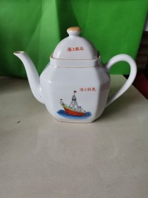 手绘(海上航运)茶壶1把。瓷质好,完整1套。中国景德镇底款。如图包老