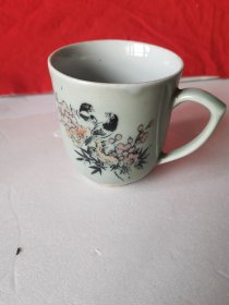 六七十年代中国龙泉窑喜鹊登梅瓷茶杯1把。完整如图包老
