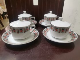 早期中国醴陵款咖啡杯,红茶杯,小耳杯4套合售(品相完好)