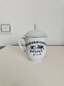出口创汇时期中国唐山出品的墨竹图案盖杯2只,哈市道里区人民政府八四年无火灾奖品(未使用过,完好无瑕疵)