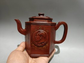 品名:六方纪念壶 底款:中国宜兴 顾景舟 尺寸:17/12cm.. 容量:420cc 泥料:原矿红泥