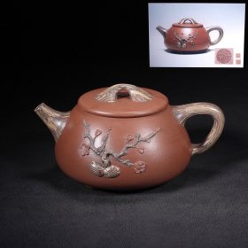 品名:松竹梅 底款:何道洪 尺寸:19/11cm 容量:600cc 紫砂分类:底槽清 底款介绍:何道洪,1943年出生于宜兴蜀山,是中国陶瓷艺术大师、研究员级国家级高级工艺师。曾赴中央工艺美术学院修习陶瓷相关课程,深研造型、装饰设计,涵养创作美学。 代表作品有《壁钰壶》、《神竹壶》、《圣珠》、《松竹梅》、《大韵》、《梅竹双清》、《集思》、《大涵》、《道方》
