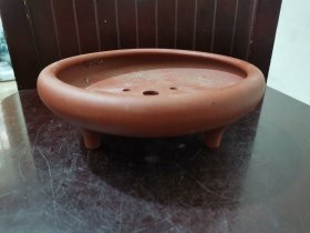 早期中国宜兴款三足紫砂壶承,干炮台。(品相完好)