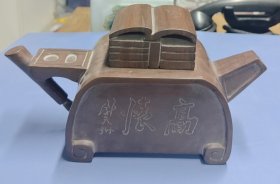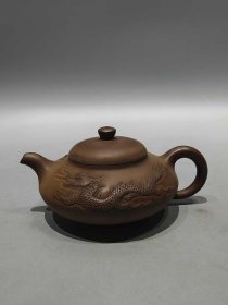 中国宜兴款紫砂壶外面白铜嵌龙凤纹 盖上面圆纽掉了