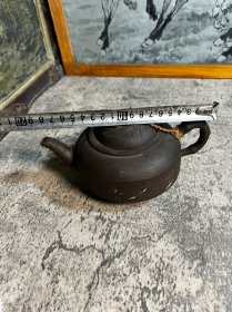 老紫砂壶 1把,周俊,江苏宜兴 ,工艺美术师,挺干净的。中国工艺美术协会会员。自己98年创办“荣宝壶轩”以来,其作品深受国内外壶艺鉴赏家的好评及收藏。 1师从岳母 蒋蓉大师,作品曾多次获奖,得到国内外许多收藏家的青睐。 没有盖子。茶壶,茶壶。石人刻,直径9厘米高5厘米左右。里面挺干净的。壶口外直径最大6厘米,壶口内直径5.1厘米左右。雕刻竹子图案。雕刻字 高山 长 啥啥。容量200毫升左右