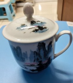 茶杯,山水绘画,中国建湘款,长沙市青年婚姻事务所一九八四年4.28.79.2。湖南建湘瓷厂成立于1954年,列为长沙八大名企,是重要的出口创汇单位。