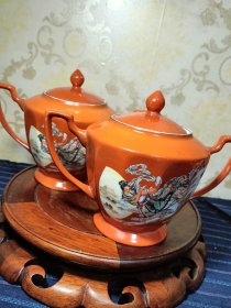 567十年代,中国唐山双凤款/山湖红/嫦娥奔月/茶叶罐一对。少见特殊,人物造型栩栩如生,釉坝底,唐山九瓷双凤款。保存至今实属不易,品相一流,可藏可用。